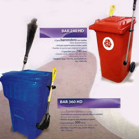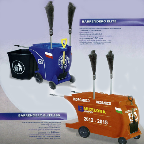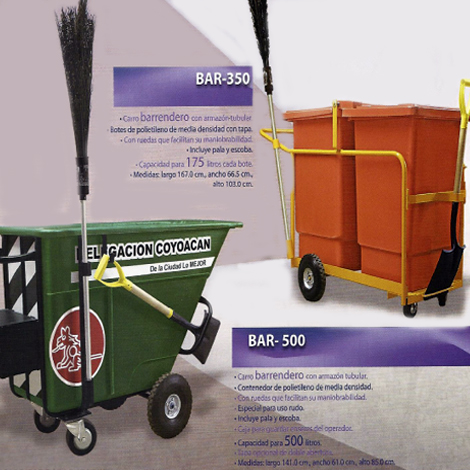 Carro barrendero con dos botes, excelente para separación de desechos..